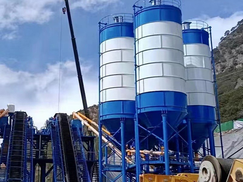 水泥仓采用单元模块化设计、组合式结构,水泥仓上下部各装有料位计,除尘系统;为防止粉料起拱,在料仓锥部装有吹气破拱装置;可设计为片状水泥仓,运输方便。